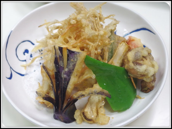 因為是分食,所以就把炸蔬菜裝了一份小盤,給食物一直沒有來的女兒吃。為什麼她的食物一直沒有來呢?請看……