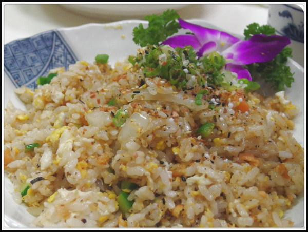 這是娘點的鮭魚炒飯,也相當清爽。當天個個像個餓死鬼投胎似的,食物一上來,因為分食,很快一掃而光,要不然就是忘了拍另外一道菜色的照片。每次出來吃飯,都是照相機先吃飯,這次我的嘴巴倒是動的比照相機快,噗~~飯後還有綠豆湯,吃完所有的菜色之後,說真的,我還不太飽,不過我們早就決定,吃完中品日式料理之後,就要到旁邊去吃豆花啦!
