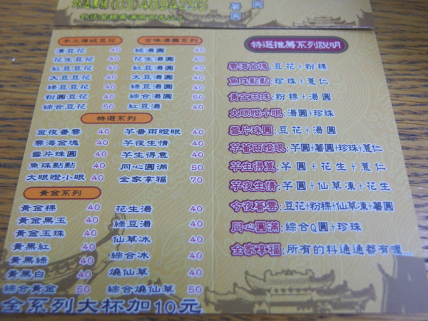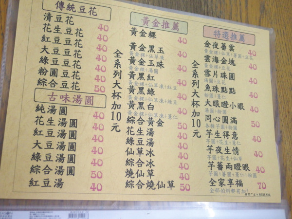 看不懂的,沒關係,來來來,這裡有沒有更清楚點?所謂的芋蕃兩瞪眼,是芋圓、薯圓、薏芢跟粉圓,而芋夜生情是芋圓、花生加仙草。老闆實在太有才了!竟然取了這麼多讓人印象深刻的名字?