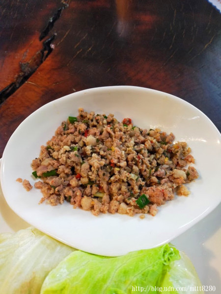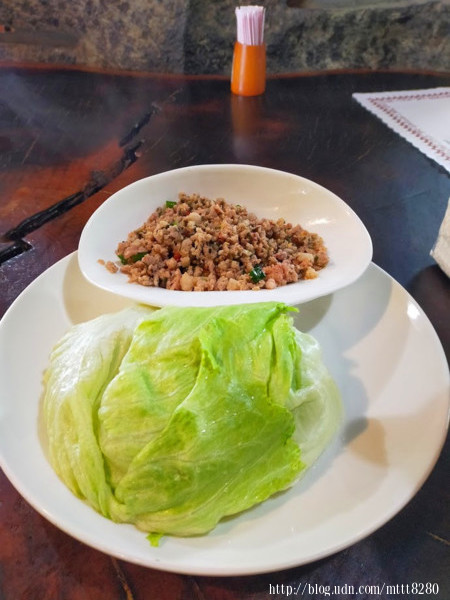 這道菜色的名稱叫擺夷錦灑,它上面的肉嚐起來很像打拋豬~~單吃十分下飯~~