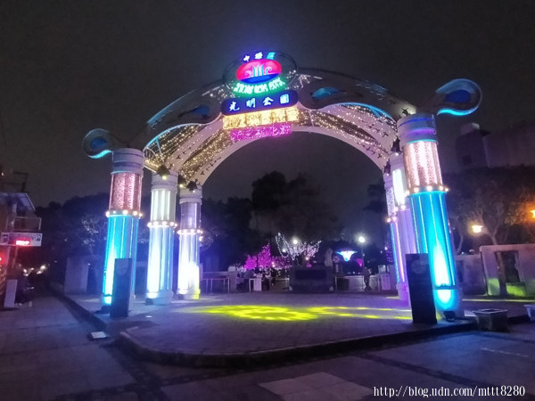 從光明公園的正門進去,會看到廣場,再往前走一點,就是燈會入口處,由於疫情關係,所以即使公園相當空曠,也是要實聯制、量體溫跟噴酒精喔!