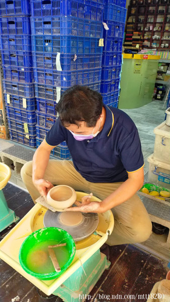 在認識了宋健誠老師之後,他介紹要怎麼捏陶,他說得很清楚,我聽得很模糊……這位老師也太有特色了吧?說話完全是快轉1.5倍……這已經不是有如大海滔滔不絕的程度,而是有如行雲流水,一氣呵成,這行雲跟流水的速度也是風暴級的吧?(誤~~)總之,在老師的帶領下,我完成了我人生第一個碗……