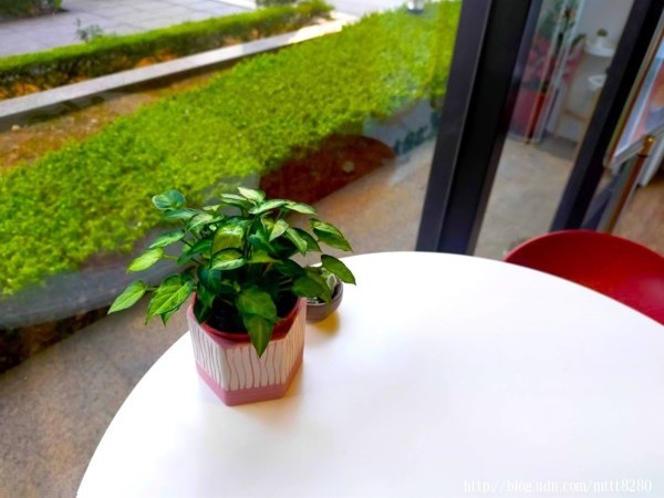 坐在窗戶旁邊,吃著冰,看著窗外,感覺非常悠閒~~這不是我坐的位置,是離開前看到這裡望出去的景色不錯,順手拍了一張。