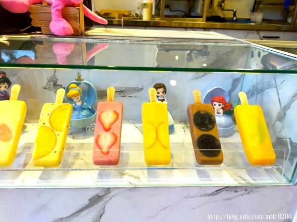 就是這個!用眼睛吃的冰棒~~不過這只是冰的模型啦!當然店裡也有販售,只是這次我們母子倆沒吃,因為我們的目標是雪花冰,不過,這些冰的模型看了還是很誘人啊~~反正不算遠,有機會再輪流吃一遍。