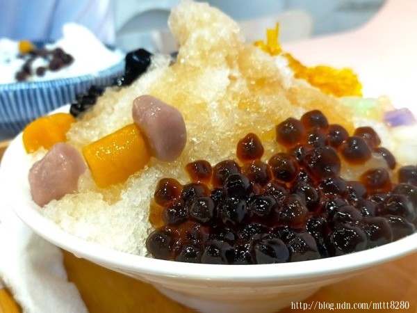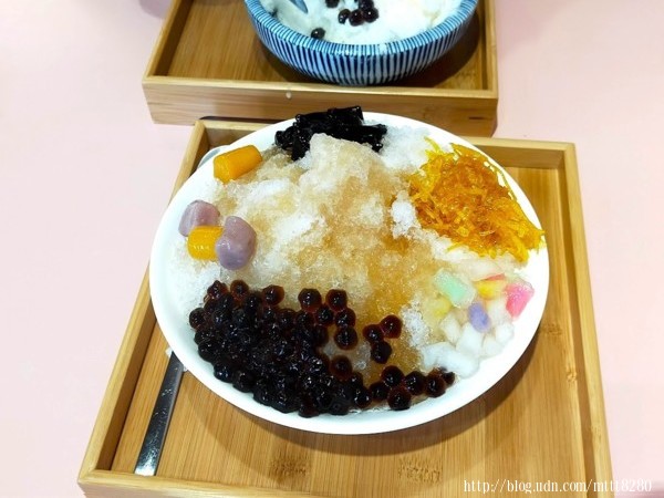 這才是我點的雪花冰,五種料50塊,在物價節節上升的環境中,這碗50塊又有五種料的剉冰我覺得很OK~~珍珠、芋圓、仙草、QQ、木瓜絲,吃完也很滿足。
