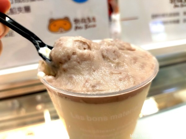 然後我就要了這個芋頭奶酪……(?)人家不是推薦杜倫燒嗎?就……在討論的過程中,我的眼神還是情不自禁往芋頭望過去,最上面的芋頭泥滿豐厚的,下面有奶酪,一湯匙挖下去,挖到底(這是重點),將奶酪和芋泥同時放到嘴裡,可以感受到芋頭的香氣和奶酪的柔順~~嘿嘿,我沒選錯。