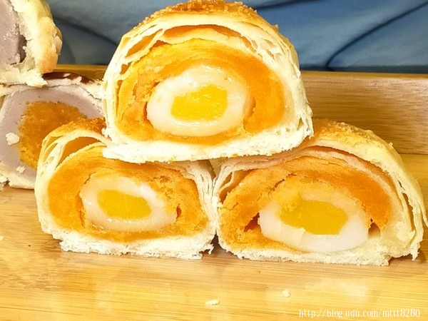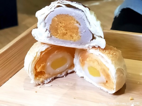 這個芋頭燒(把它想成芋頭酥就對了)裡頭有芋頭跟鹹蛋黃,其實是還滿好吃的,只是我個人對鹹蛋黃不是很愛……終於有我不愛吃的東西了?(?)我是那種吃蛋黃酥會把蛋黃挑掉,還有肉粽吃到鹹蛋黃會把它拿起來的人……(到底是對鹹蛋黃有多深仇大恨?)如果對鹹蛋黃沒意見的人,這款也很值得推薦XDDDD