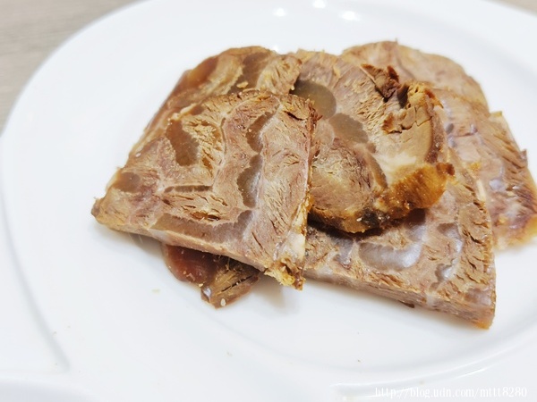 我喜歡它們家的滷牛肉,說薄,其實還是有點厚度,大概0.2cm~0.3cm左右,我不是牛筋派的,但它的筋滷得很透徹,咬下去感受到牛肉的纖維,幾乎用舌頭就可以讓它化開。朋友來的時候,本來想招待她,結果她因個人因素不吃牛,那就我獨享了,哈!