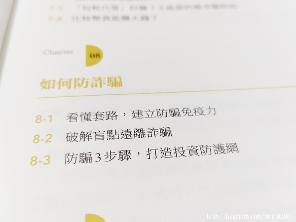 書裡還有提到如何防詐騙,現在詐騙很多,就算有錢,也要守住。