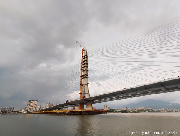 全球最長單塔的斜張橋--淡江大橋。(截自2025年)淡江大橋連接淡水區、八里區,不論是公車、機車、自行車,以及人行專用道。
