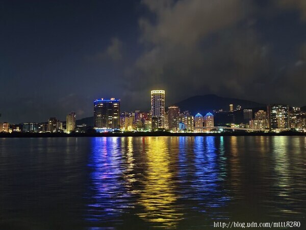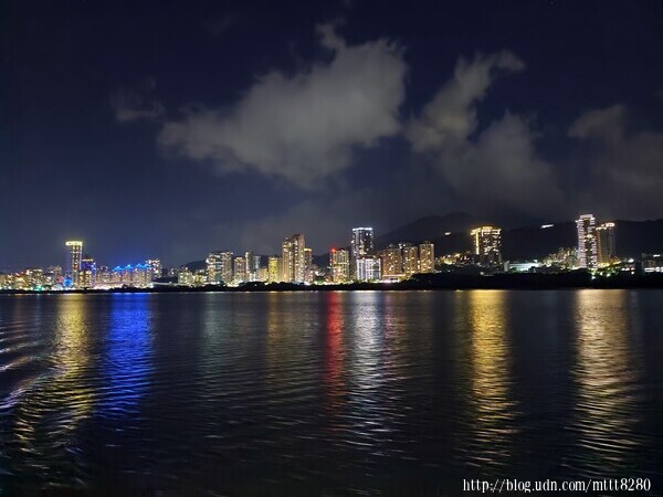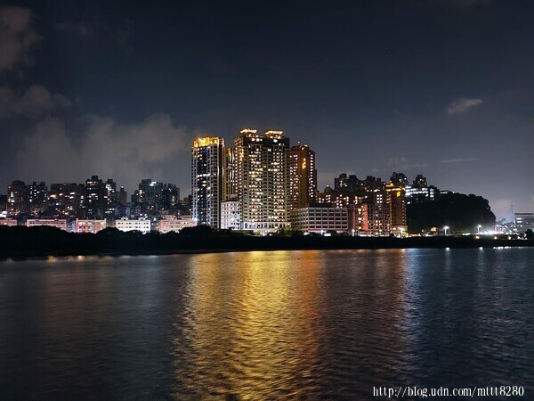 燈光越明,就是越要抵達岸邊,雖然沒有江月照人,不過也水天一色,倒映在江水中的不是星河,而且岸邊的高樓,就估且充當星光吧!