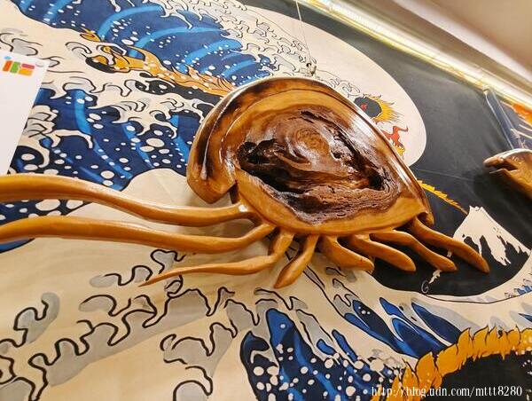 牆面還有浮世繪,這橫剖的木頭看起來頗像舞動的水母。