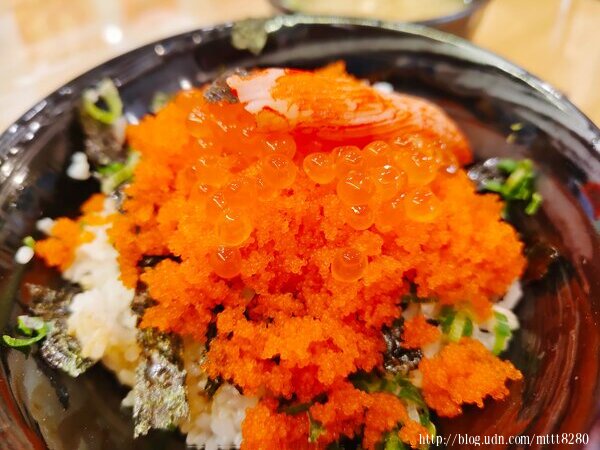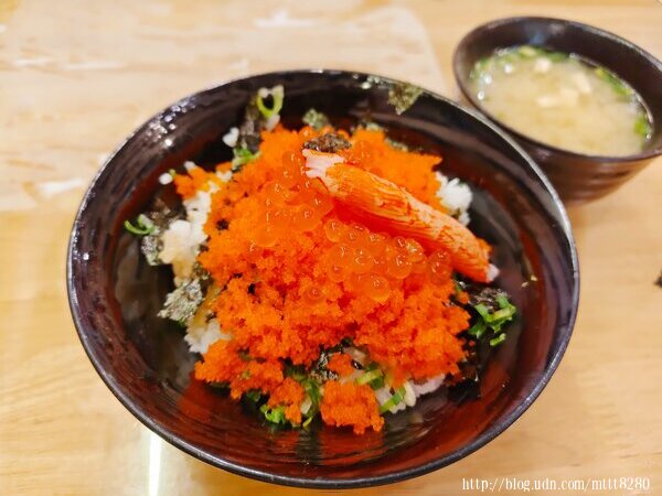 這是我點的魚卵丼飯,鮮度算是不錯。