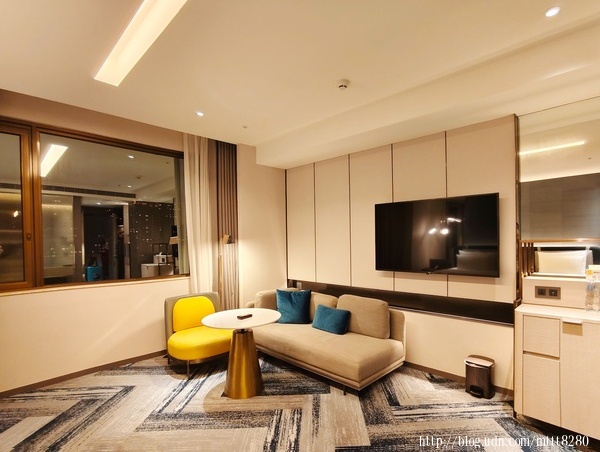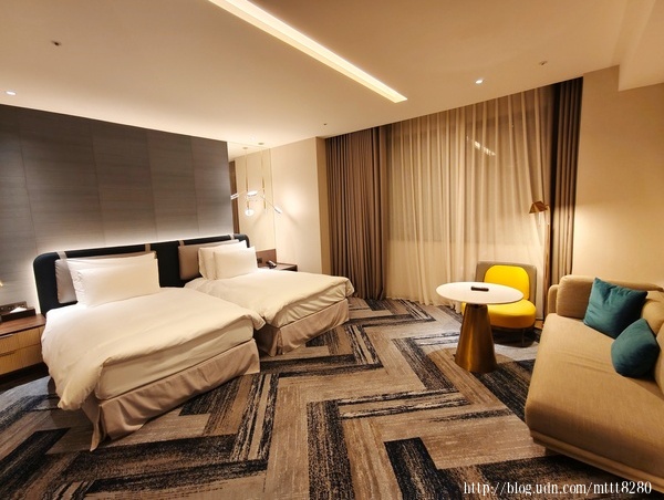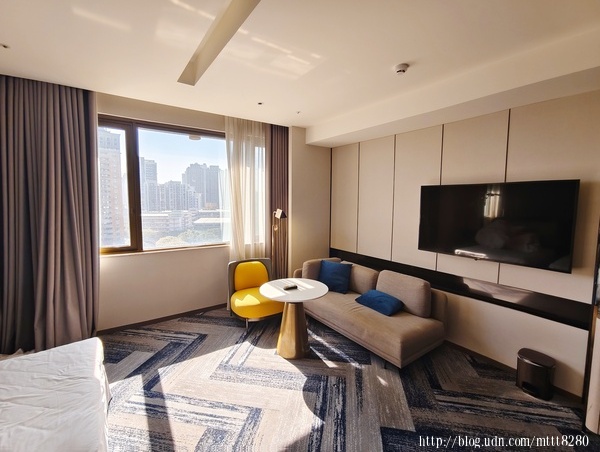 這是我跟朋友入住的房間,那個黃色的椅子有畫龍點睛的效果,亮眼,但不突兀,反而在房間感到溫馨,色調搭配讓人覺得可愛。令人想到小小兵(????