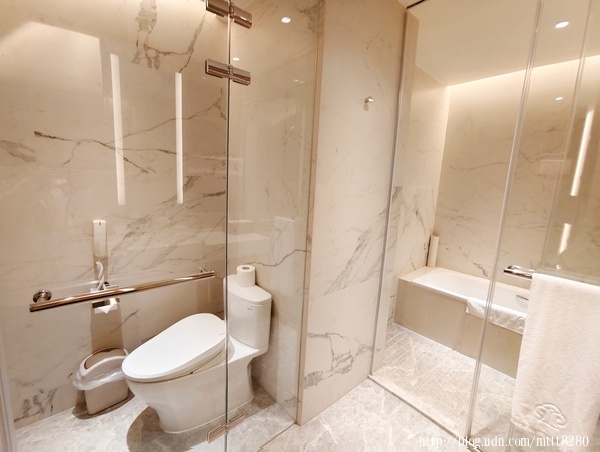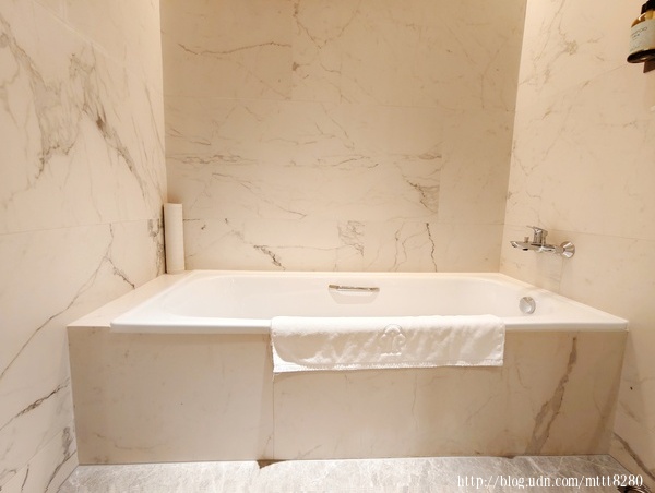先將行李放妥,和朋友聊了一下天,終於決定進來洗澡&泡澡,潔白的牆面和地面,浴室採乾濕分離,我也好想將家裡的浴室改成這麼有質感的空間,想想而已……