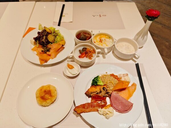 簡單漱洗一下,來到一樓的餐廳,以前住飯店比較偏好西式餐點,近兩年有機會住宿的話,反而選擇中式料理居多。