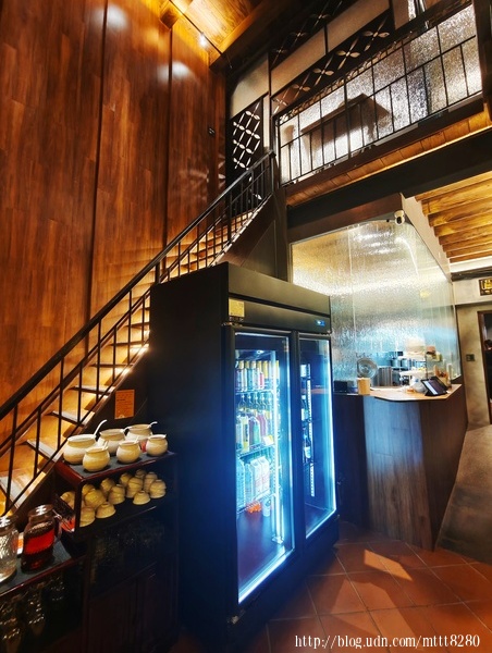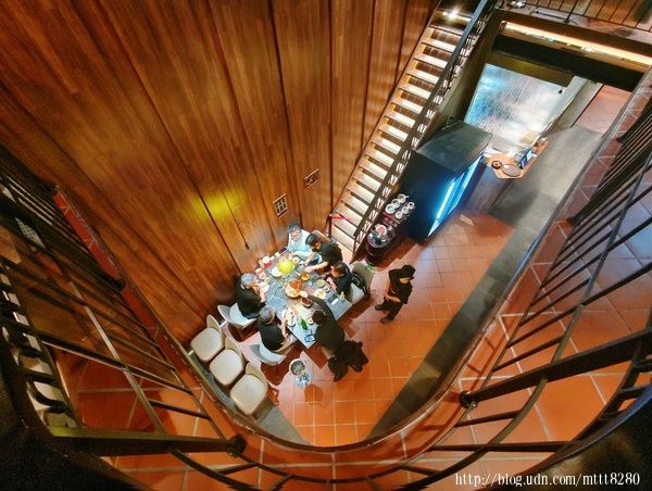 這間「丈八厝」形式,並有盾形幾何樣式的女兒牆,劃分了過去和現在。進到店內,站在樓梯邊,從樓上往下瞧,一如歷史的漩渦。