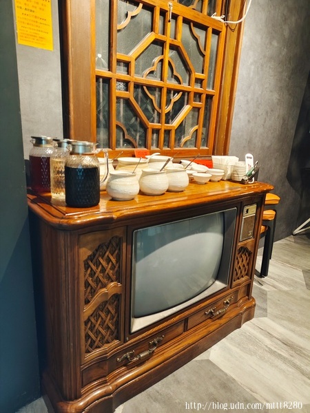 在老電視上面,擺著各式醬料,任君取用,適量即可。