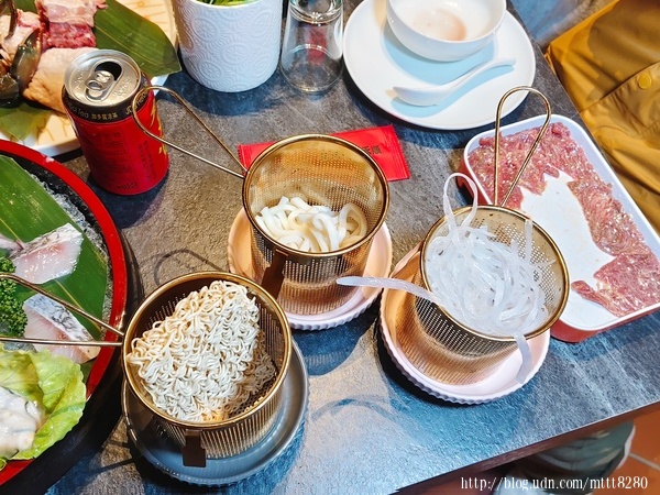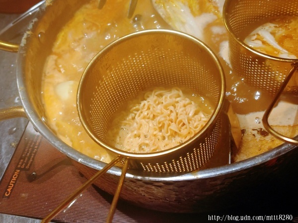 說到主食,我們幾個人有人點飯,有人點王子麵、冬粉等,這個籃子相當方便,只要掛在火鍋旁邊,等到要吃的時候,直接取出來,就不用在鍋子裡找來找去。
