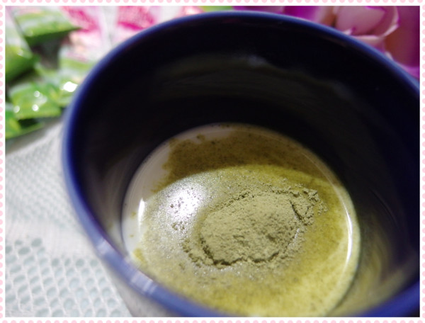 雖然它標示用溫開水沖泡,充分搖勻後就可以飲用,但是喝起來就是綠茶粉的味道,一點甜度都沒有……
