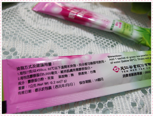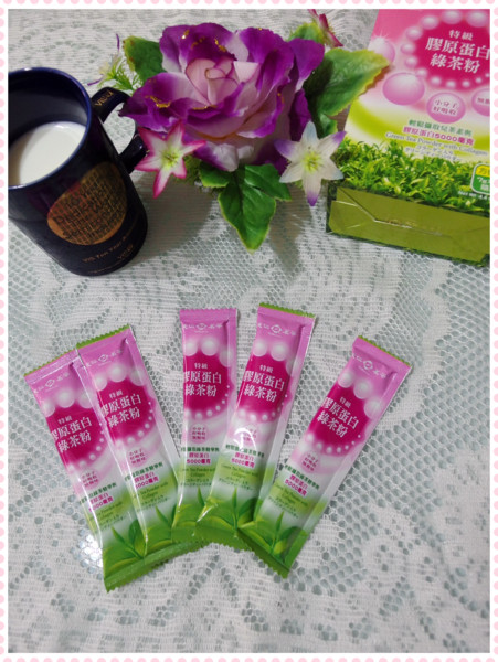 雖然我也很想補充一些膠原蛋白,不過光是綠茶粉的味道,有點無法接受(喝綠茶就沒問題啦!哈哈!),山不轉路轉,方法是靠人想出來的,嘿~~