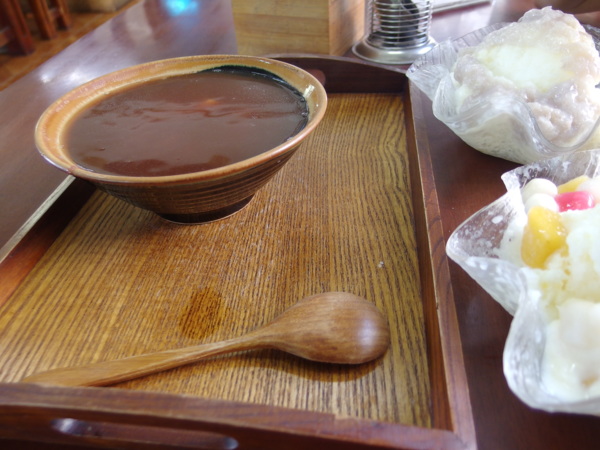 兒子一看到冰,眼睛就亮了,吃了2/3時,就開始喊冷,這傢伙!見他如此,老媽就把紅豆湯分一些給兒子吃,我就幫忙把他的冰慢慢吃掉了,又沒人跟他搶,急什麼呢?