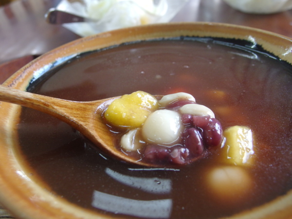 老媽的紅豆湯上來囉!煮的綿綿的紅豆加上湯圓真好吃,難怪女兒有時候吃紅豆湯時,總免不了說要配湯圓。