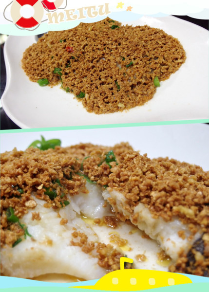 老人家都像怕大家吃不飽似的,眼看前面幾道菜都吃得差不多了,老爸又追加了幾道菜,這道豆酥鱈魚一上來,魚呢?撥開豆酥,就可以看到鱈魚啦!