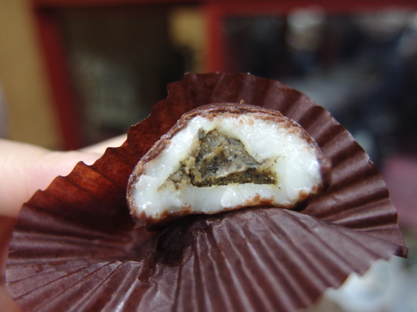 至於這個巧克力芝麻麻糬,外硬內軟,好吃好吃!一人一個不夠啦!為了幫老公減肥,所以我就犧牲一下,而老爸不大吃甜的,老姊就幫忙消滅了……至於這個甜點要先預定啦!
