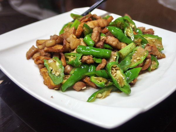這道是青龍小炒,青龍在天(?)……好奇的問了什麼是青龍?原來是糯米椒,吃起來不會辣,加上它的肉絲跟豆干,吃起來頗下飯。