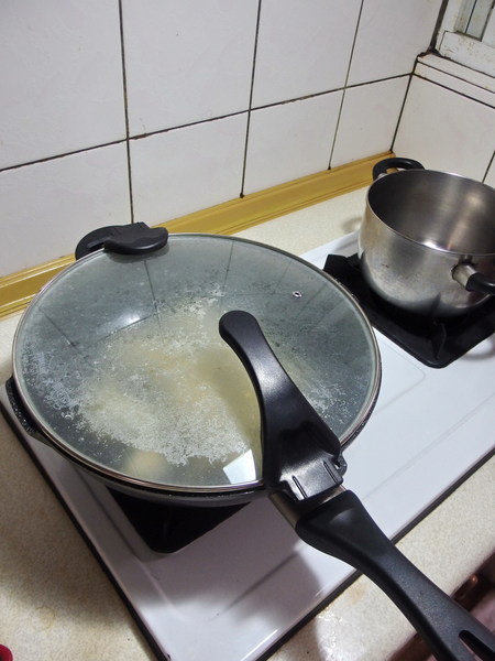 3.加入熱水,約到水餃一半高度,蓋上蓋子。