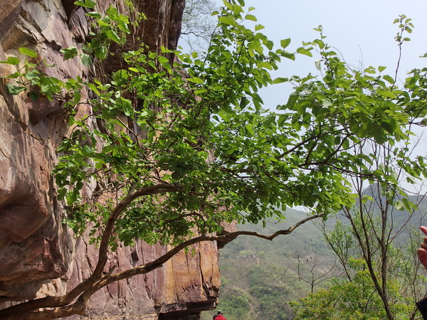 走著走著,看到一棵在山壁上長出來的樹,吸引了我們停下來拍照。這棵樹是從山壁上長出來的,在惡劣的條件下還可以長得這麼好。