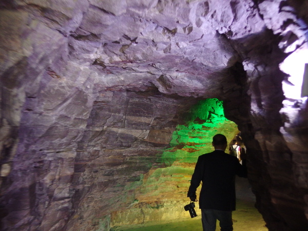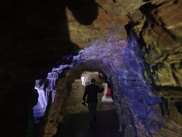 跟著劉處走著,他進來了山洞,洞裡頭有投射燈光,讓我們知道要怎麼前進才不會撞壁XD~~今兒個的天氣很好,山壁裡頭卻是十分清涼。