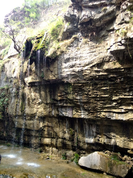 過了石板橋之後,再照對面的山壁,那些陡峭的岩壁,正訴說著地質的演變。層層疊疊,像極了千層酥(咦?