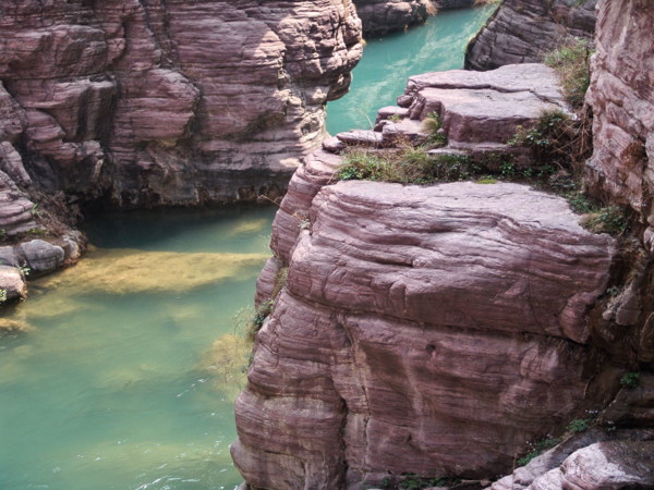 從橋上看著紅石峽,只見壁立千仞,看起來滿險峻的,不知不覺想起來瑯琊榜……那瑯琊閣就建在深山,或許梅長蘇就在裡頭養身子……想太多,地點也不對啊!但腦海裡總是不自覺浮出古人的身影啊!