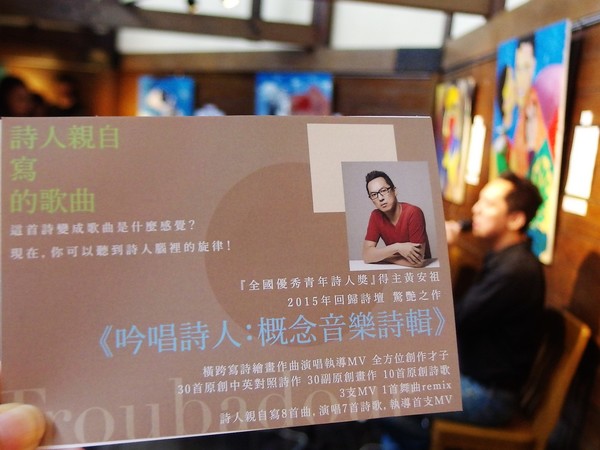 2016.07.09這天,我應邀來到西門町漢中店,欣賞黃安祖的詩歌會。很久沒有現場聽到歌手唱歌了,大多數都是從電視或是CD裡欣賞,不過,現場聆聽,和透過機器出來的吟唱,還是不同感受的。