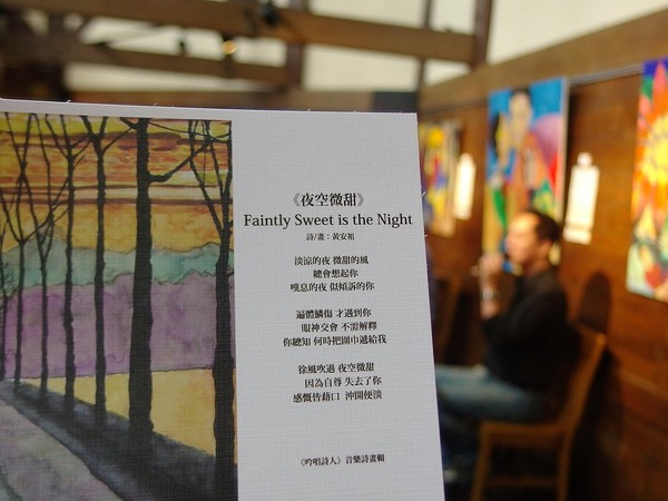 詩跟畫跟歌,有什麼關連?一個是咀嚼出來的文字;而畫則是視覺上的欣賞;至於歌則是衝擊了聽覺。而這透過嘴巴、透過眼睛、透過耳朵欣賞的藝術,是黃安祖對藝術的呈現。