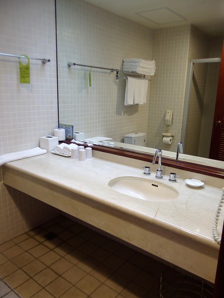 而抵達房間的時候,我們就開始在找拖鞋了……拖鞋呢?沒有!沒有!後來才知道,因為他們是金級環保旅館,所以也沒有提供紙鞋,但遊客如果真的需要的話,可以在園區購買。