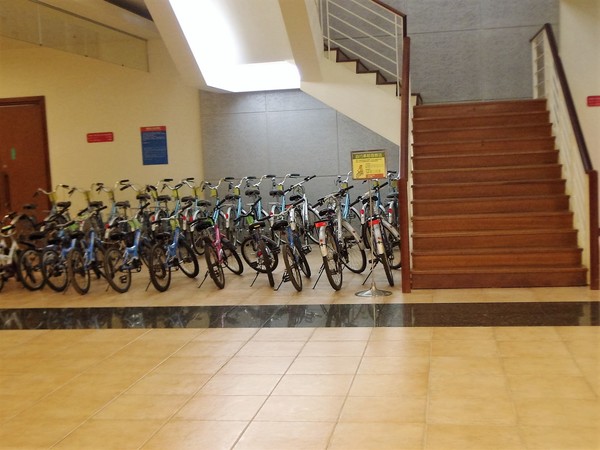 腳踏車在B1,游泳池、餐廳也是,還有個7-11,我們多是在7-11解決晚餐和宵夜。