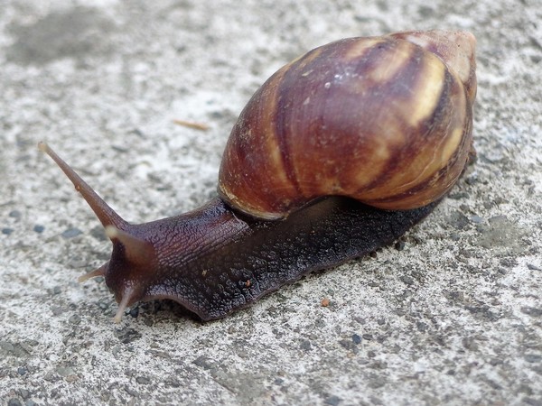 這邊的空氣很不錯,到底都看得到這種蝸牛……本來我們還想幫它前進,但在提他的殼時,覺得他的身子跟殼要分家了,趕緊鬆手,還是讓它自行爬吧!