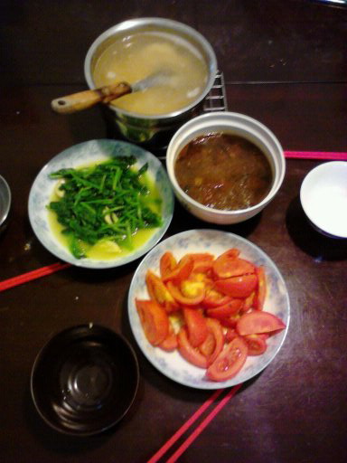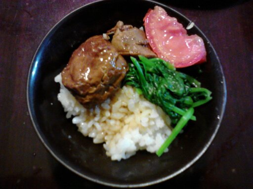 剛好今天有滷肉,就淋了一點上去,右上角的是蕃茄,不是香腸喔……XDDD