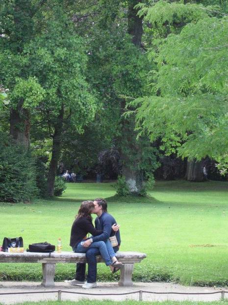 只是待在法國10天以來,看了數十對在街頭、公園親親我我的情侶