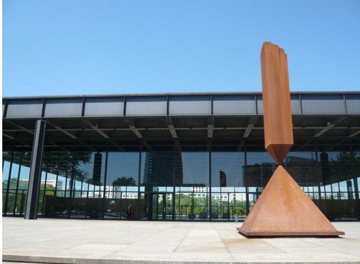 先說說作品本身, Broken Obelisk ,是一種特殊鋼材料 (Cor-Ten) 厚重,粗糙鋼度表面,上面看似懸空卻顛倒的方尖碑以只有 2.25 英吋的接合點,完美平衡地固定在下方金字塔的鋼杵中。 Barnett Newman 於 1963-4 開始構思及實驗這份作品,到 1967 年完成兩件,目前共有六件放置於歐美各國。 2003 年柏林經過 Barnett Newman 基金會的同意,將此作品展示在新國家藝廊,在隔年迎接 MOMA 的觀眾,這也是我在柏林所看到的作品。