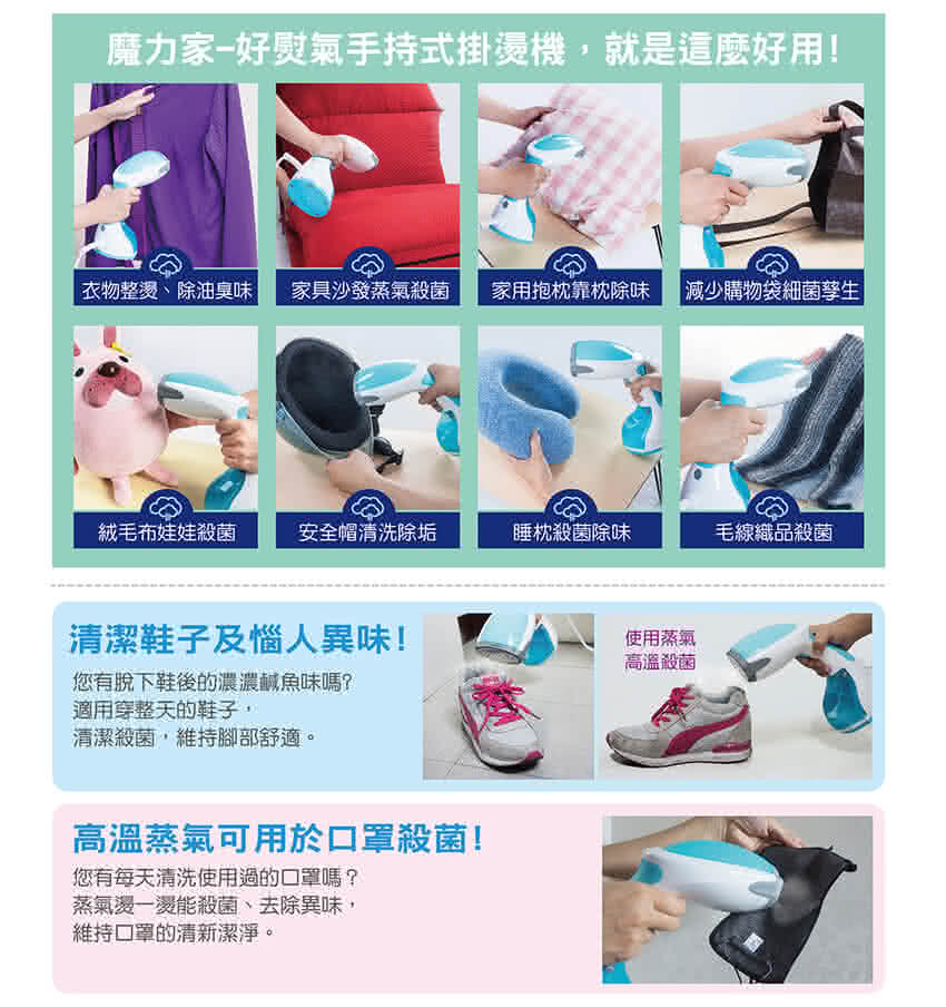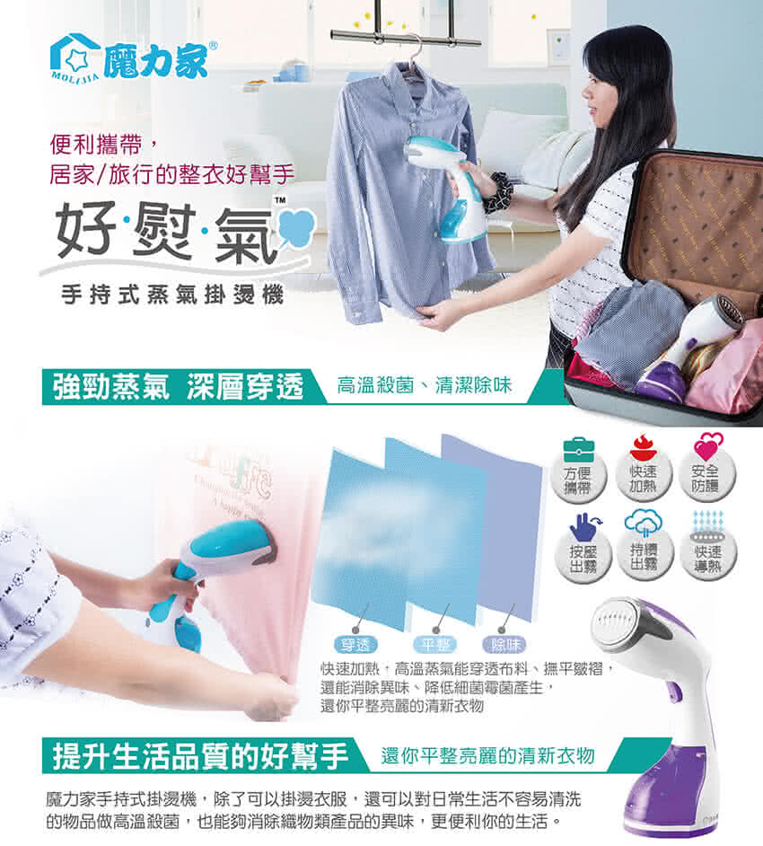 推薦 【魔力家】好熨氣-手持式蒸氣掛燙機(蒸汽機-電熨斗-蒸氣熨斗-熨燙機-整燙機-掛燙刷-燙衣)