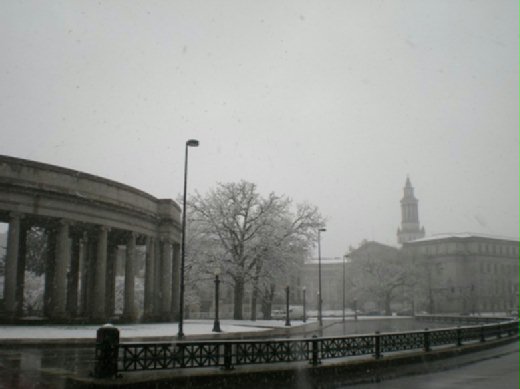 ↑週四(4/10/08)上午行經Civic Center Park附近時的下雪情景