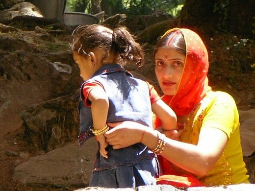 母親不得不在人行道上蹲下身來,為兒子繫好鞋帶。母親無意中抬起頭來,