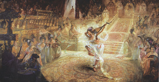 昔者漢靈帝好胡服、胡帳、胡床、胡坐、胡飯、胡箜篌、胡笛、胡舞;京城貴戚,皆競為之。所謂上有好者下必有甚也。李唐起自西陲,曆事周隋,不唯政制多襲前代之舊,一切文物亦複不間華夷,兼收並蓄。第七世紀以降之長安,幾乎為一國際的都會,各種人民,各種宗教,無不可于長安得之。太宗雄才大略,固不囿於瑣微,而波羅球之盛行唐代,太宗即與有力焉。開元、天寶之際,天下升平,而玄宗以聲色犬馬為羈縻諸王之策,重以蕃將大盛,異族入居長安者多,於是長安胡化盛極一時,此種胡化大率為西域風之好尚:服飾、飲食、宮室、樂舞、繪畫,競事紛泊;其極社會各方面,隱約皆有所化,好之者蓋不僅帝王及一二貴戚達官已也。關於西域傳來之繪畫、樂舞、波羅球,以及西亞新宗教,以下分別敍述,各有專論,茲唯刺取有關於宮室、服飾、飲食諸端,在本節中予以陳說。