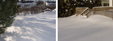 不出所料,後院裡積雪過膝,望過去只見白茫茫一片,紅花綠草當然是看不到了,甚至平日留跡在雪地上的許多動物腳印,竟然也了無蹤影。只有柏樹的影子在冬日裡的雪地上孤寂的躺著,沒人理睬。