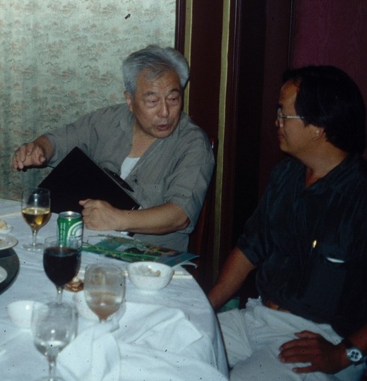 下圖當年和陳俊愉老師在北京燕京飯店聚餐,收益良多,桌上還隱隱約約的看見到那兩枝‘月季’呢!