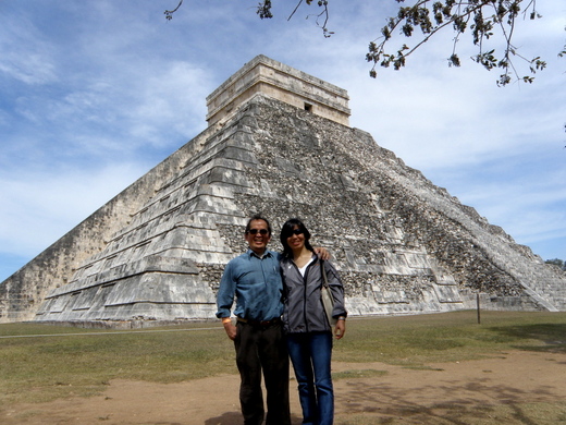 中午到了“尤卡丹 ' 金字塔,真的是嘆為觀止!馬上想到童年電影“尤勃連納””主演的“太陽王”,以人心來祭神的場景!又聽到導遊引述瑪雅民族競技的優勝者,以身祭神為無上光榮,真的難以置信,一個民族能有多少“尖子”被如此消耗殆盡啊?難怪十六世紀時西班牙入侵墨西哥時,瑪雅文明已毫無招架的能力,完全失去她昔日的‘偉大’。